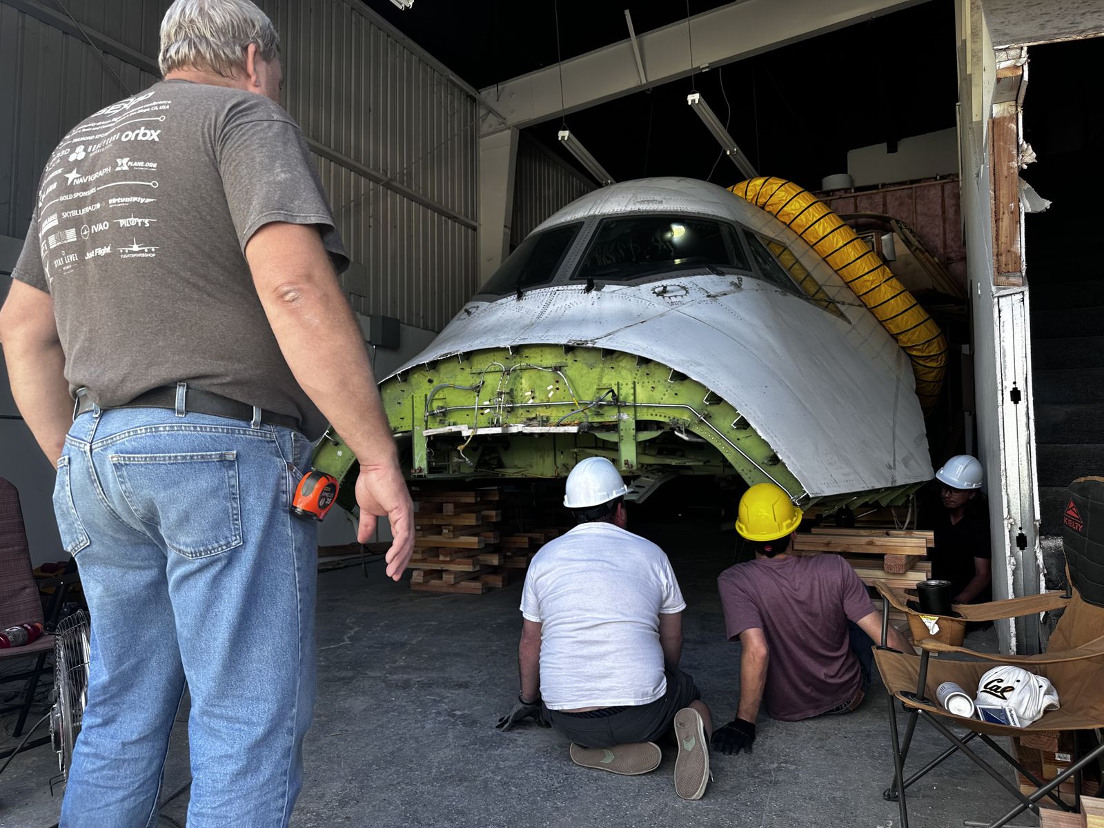 After traveling across two oceans and the Panama Canal via the NYK Diana, our cockpit has finally arrived in our "hangar".